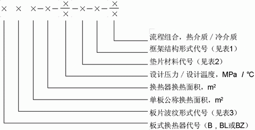 2、B-版式板换器简称;BL-版式冷却器简称;BZ-版式挥发器简称。